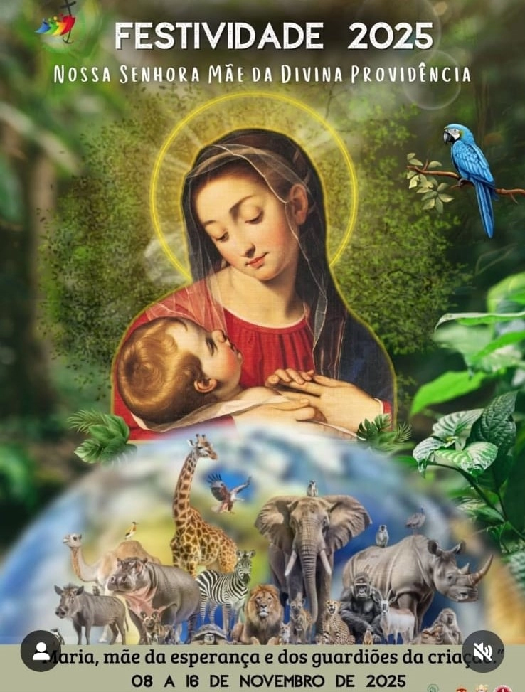 O cartaz oficial da festividade ilustra de maneira eloquente essa união de fé e ecologia. A tradicional imagem de Nossa Senhora da Divina Providência, que traz o Menino Jesus em seus braços, está cercada por uma exuberante floresta. Na base da imagem, um globo terrestre repleto de vida — com elefantes, girafas, rinocerontes, zebras e diversas aves — sublinha a mensagem central da celebração: a Virgem Maria como modelo de cuidado e intercessão pela Criação.